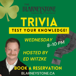 Trivia every Wednesday at 8pm! Hosted by comedian Ed Witzkie Plus 50% off wings Prizes for the winne...