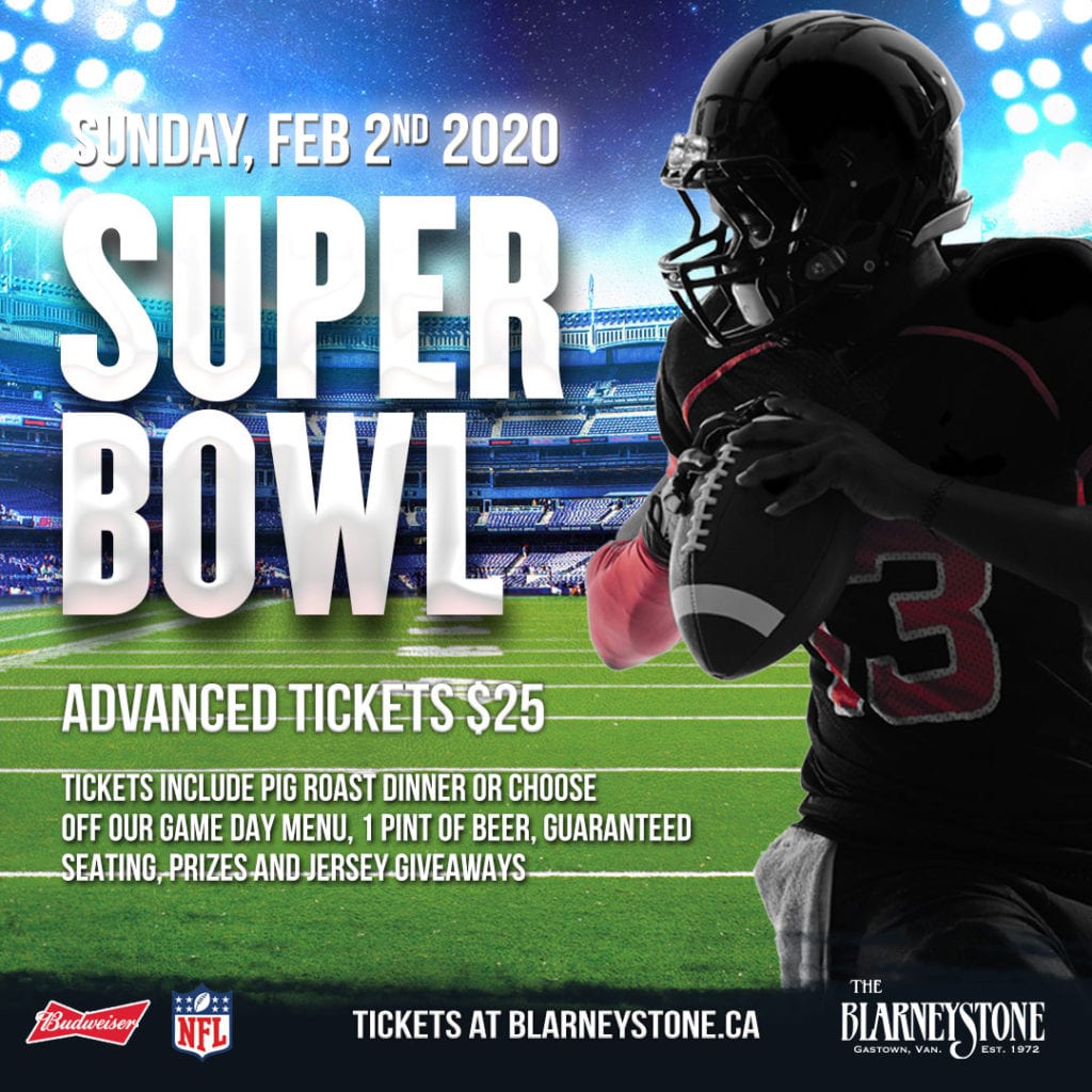 Come party with us this Super Bowl Sunday! Play games for prizes & giveaways, eat pig roast & chilli, and catch the game day action on our 240′ screen, the BIGGEST in Gastown!