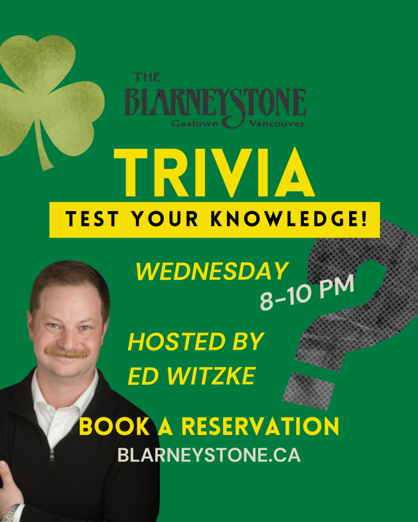 Trivia every Wednesday at 8pm! Hosted by comedian Ed Witzkie